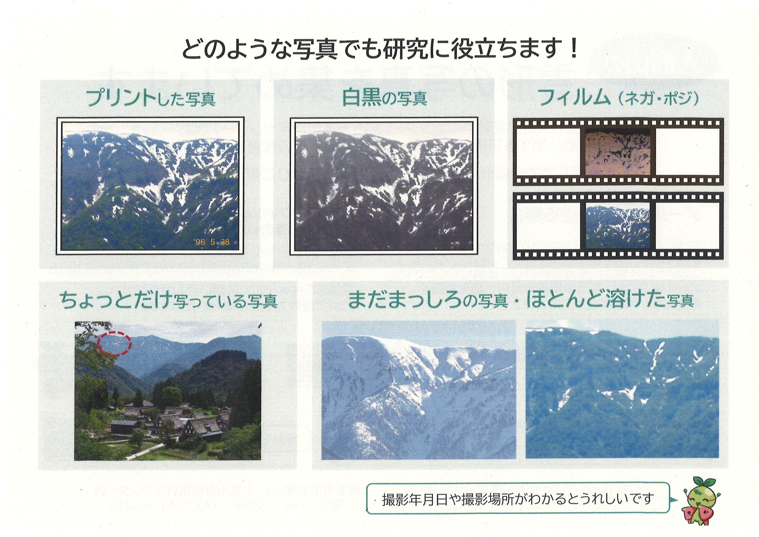 過去から現在までの雪形のお写真をお持ちでしたら、富山県気候変動適応センターまでご提供をお願いします。
